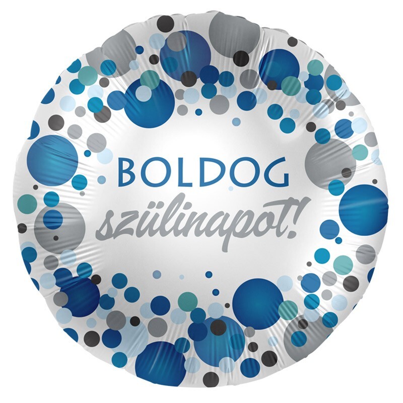 Fóliový balón s maďarským textom na narodeniny v modrej kombinácii.