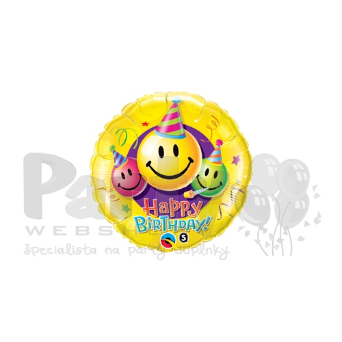 18 inch Smileys Happy Birthday! narodeninový fóliový balón so smajlíkom
