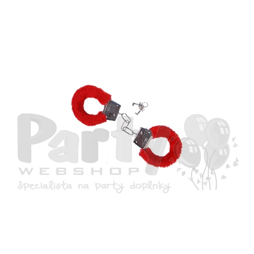 Kovové putá na ruky prekryté s červenou plyšovou látkou s 2 kľúčmi.