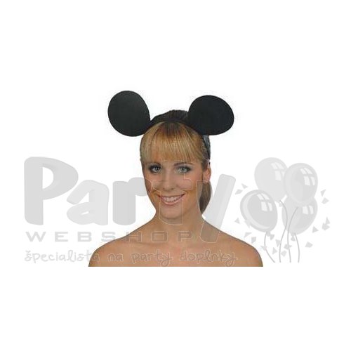 Čierne okrúhle myšacie uši z tenkého vystuženého materiálu, fixované na čelenku.