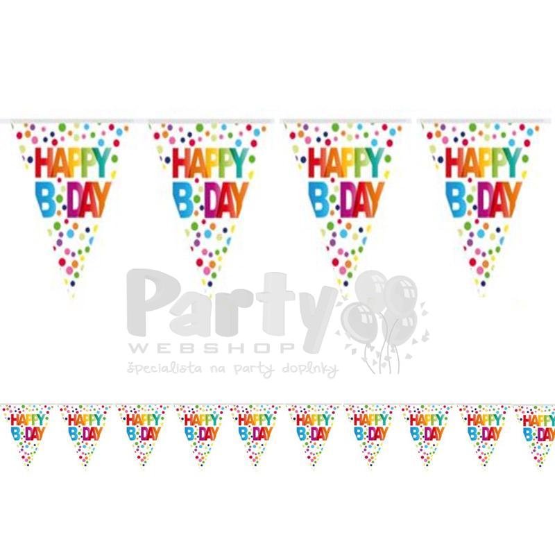 Farebná bodkovaná vlajková girlanda k narodeninám Happy Bday.