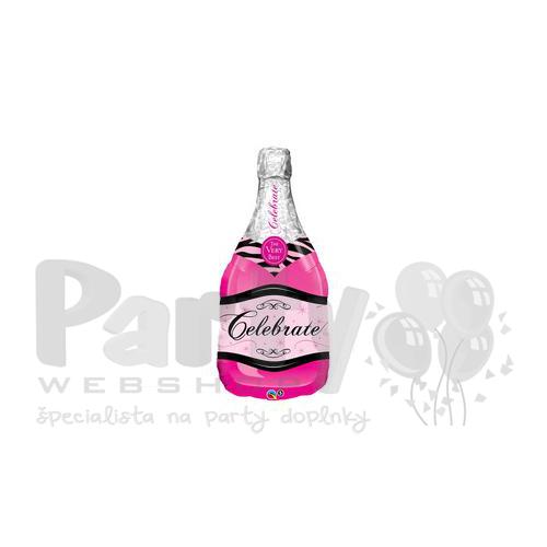 Fóliový balón - fľaša šampanského, ružový, 99 cm