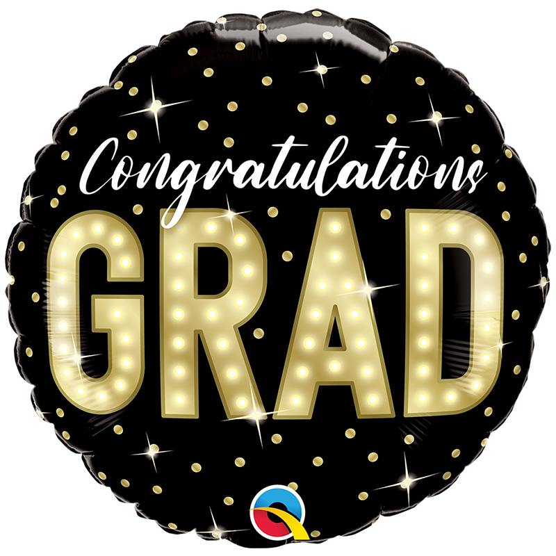 18 inch Congrats Grad Shiny zlato-čierny balón k promócii