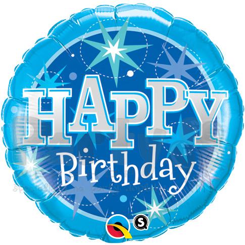 Fóliový narodeninový balón Happy Birthday so zlatými hviezdami - 46 cm