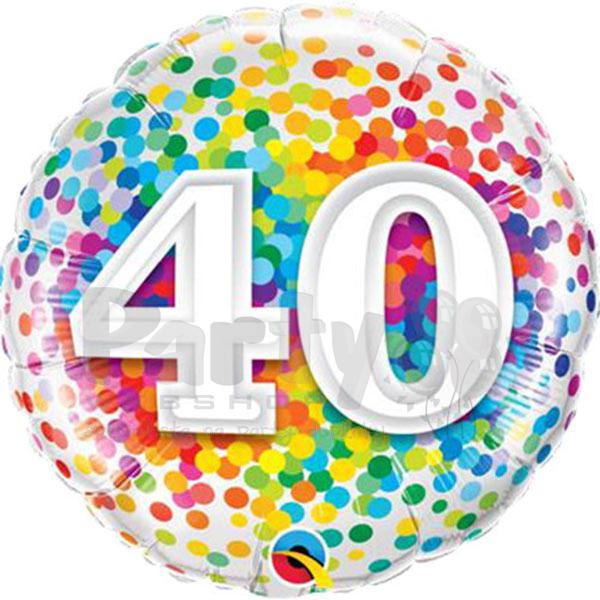 Farebný balón s veselým motívom s konfetami s číslom 40. Dokonalý darček k 40.-tym narodeninám.
