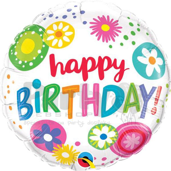 Fóliový balón s nápisom Happy Birthady s motívom kvetiniek. Dokonalý výber na každé narodeniny.