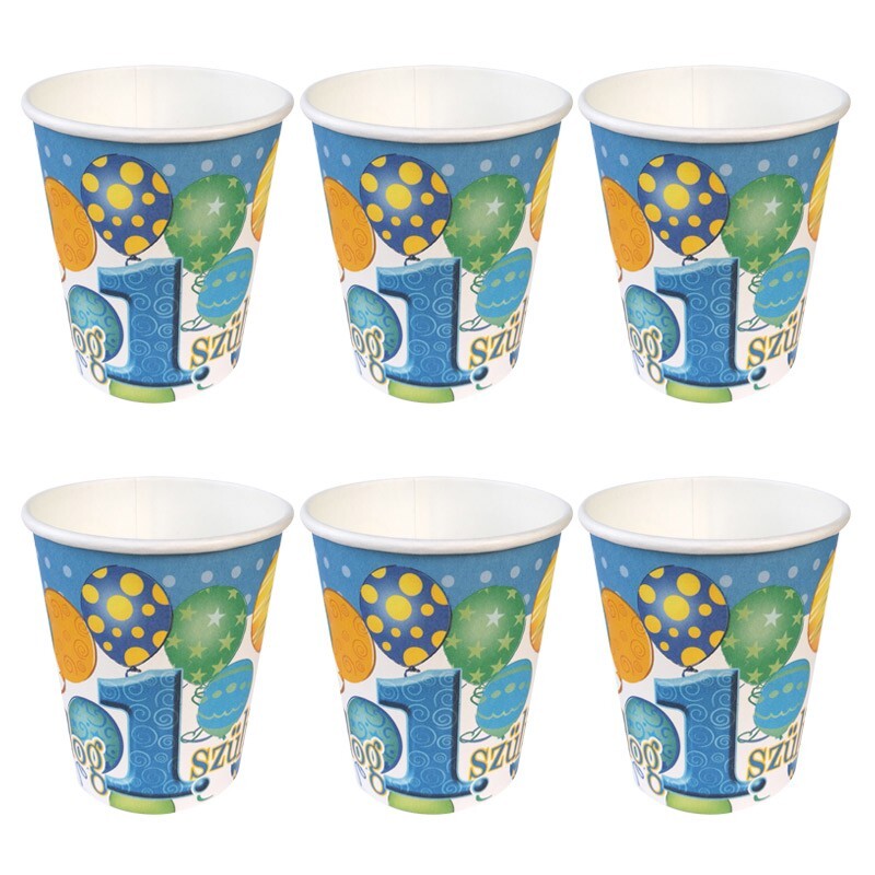 Párty poháre na oslavu 1. narodenín pre chlapčeka s maďarským nápisom Boldog 1. Szülinapot!