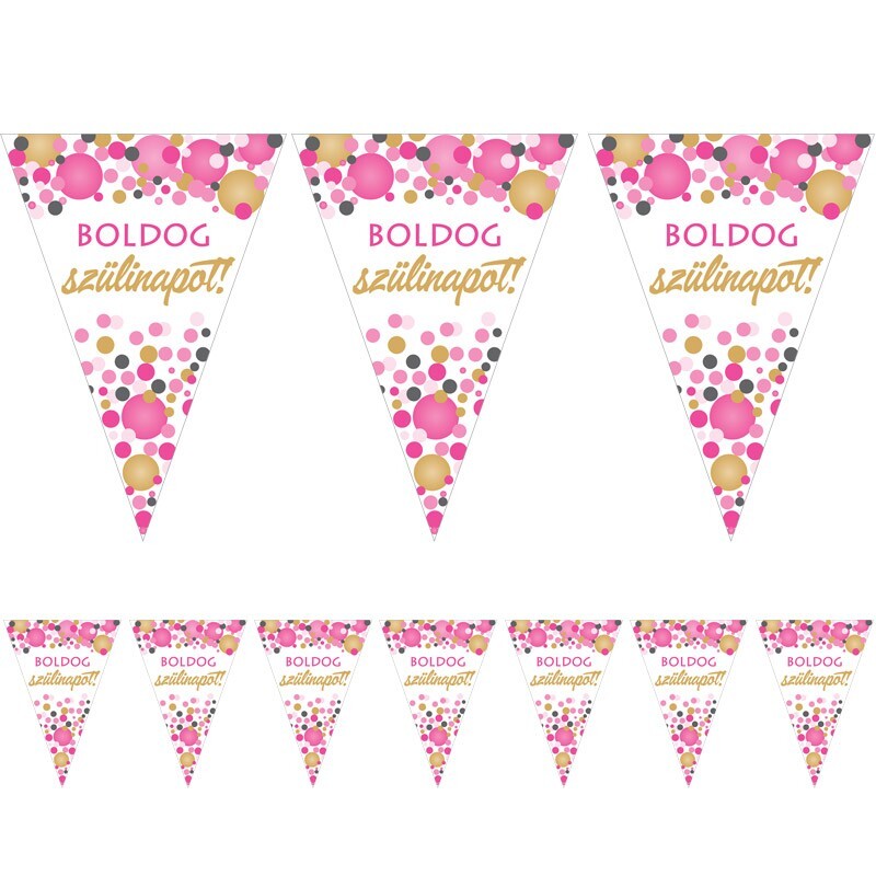 Nagyszerű és színeiben csajszi mintás zászlófüzér születésnapra!