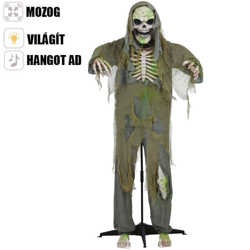 Strašidelná dekorácia svietiaca kostra so zvukom a pohybom, 160 cm