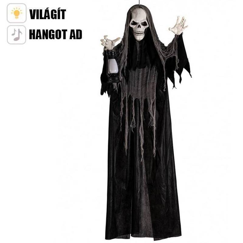 Svietiaca dekorácia čierna kostra s guľou, so zvukom, 160 cm