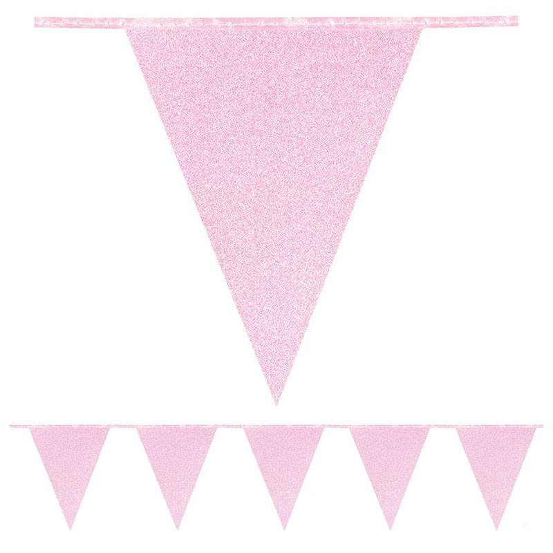 Malá trblietavá ružová vlajková girlanda - 6 m