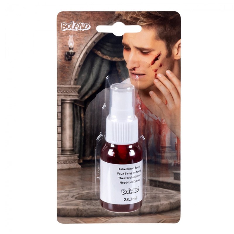Červená kvapalina s krvavým efektom, v tube s rozprašovačom.