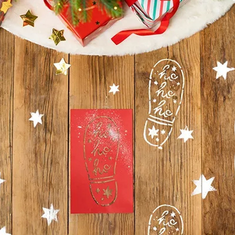 Balenie obsahuje šablónu odtlačku ľavej nohy, pravej nohy a šablónu so 4 hviezdičkami.