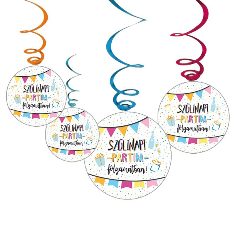 Az új Szülinapi Partim Folyamatban kollekció trendi, színes függő dekorációja.