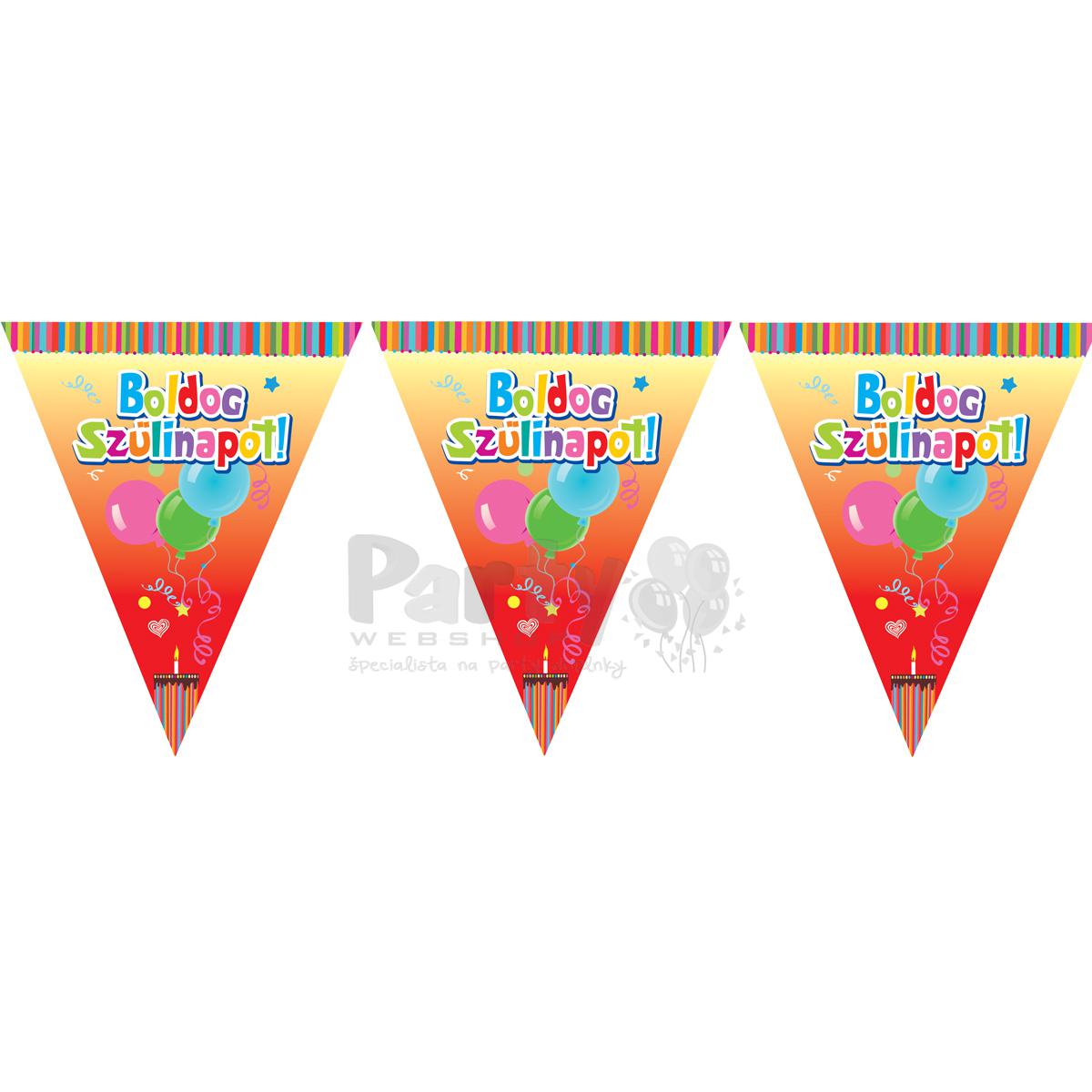 Farebná vlajková girlanda s maďarským nápisom Boldog Szülinapot!