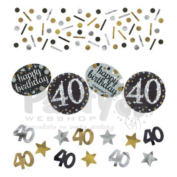 Balík obsahuje konfety s číslom 40, 34 g , čo je postačujúce na dekoráciu 4 stolov.