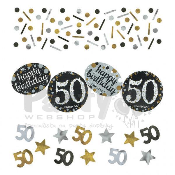 Balík obsahuje konfety s číslom 50, 34 g , čo je postačujúce na dekoráciu 4 stolov.